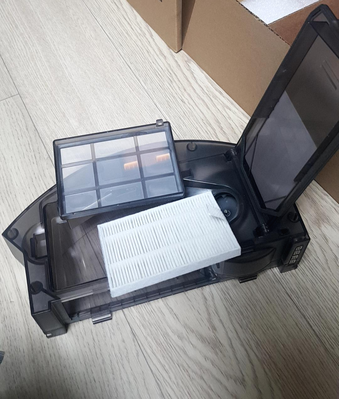 먼지통 조립이 끝났으니 물통과 교체해서 끼워 볼게요