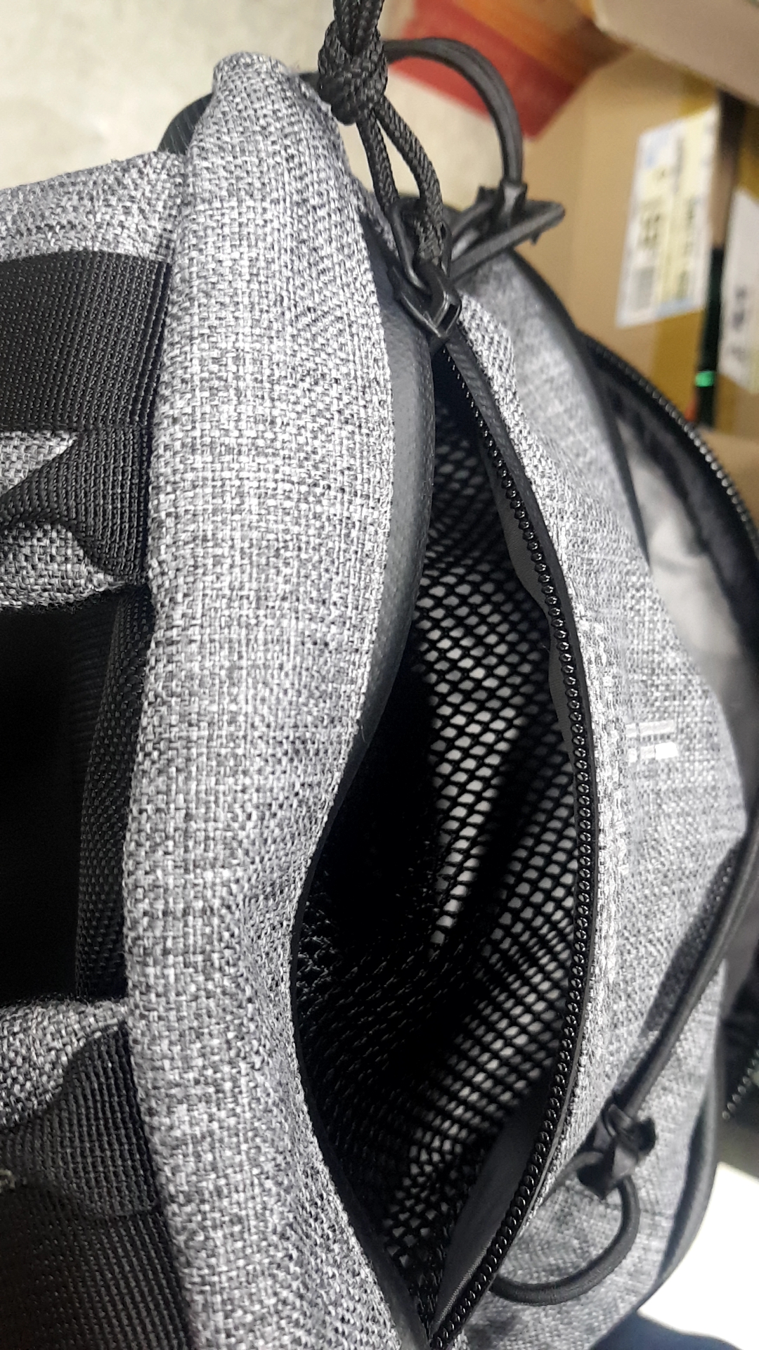 상부 포켓은 스마트폰, 이어폰 등 작은 물건 수납용입니다.