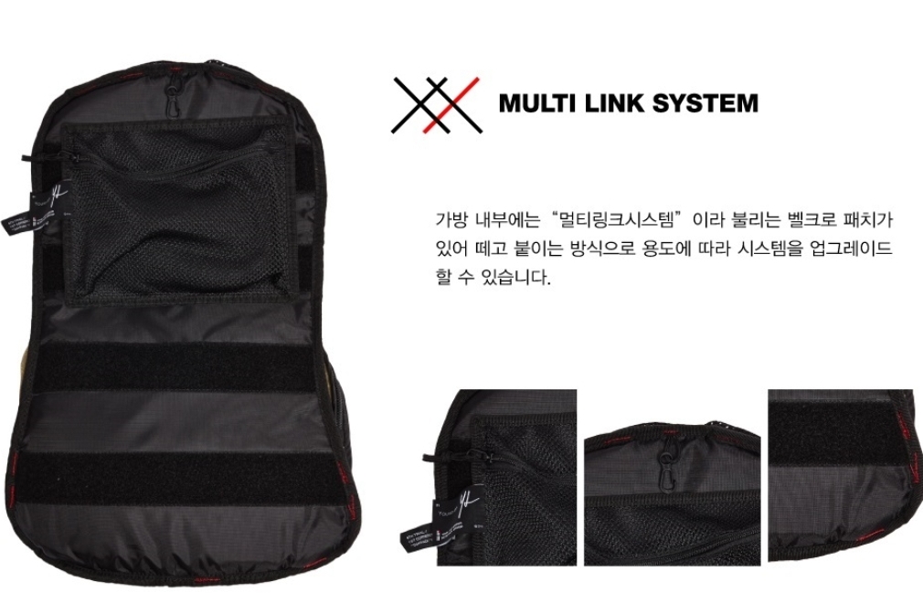 그물망 주머니가 멀티링크 시스템이군요 벨크로 패치는 발견하지 못했는데 여러모로 쓰임이 좋을것 같습니다
