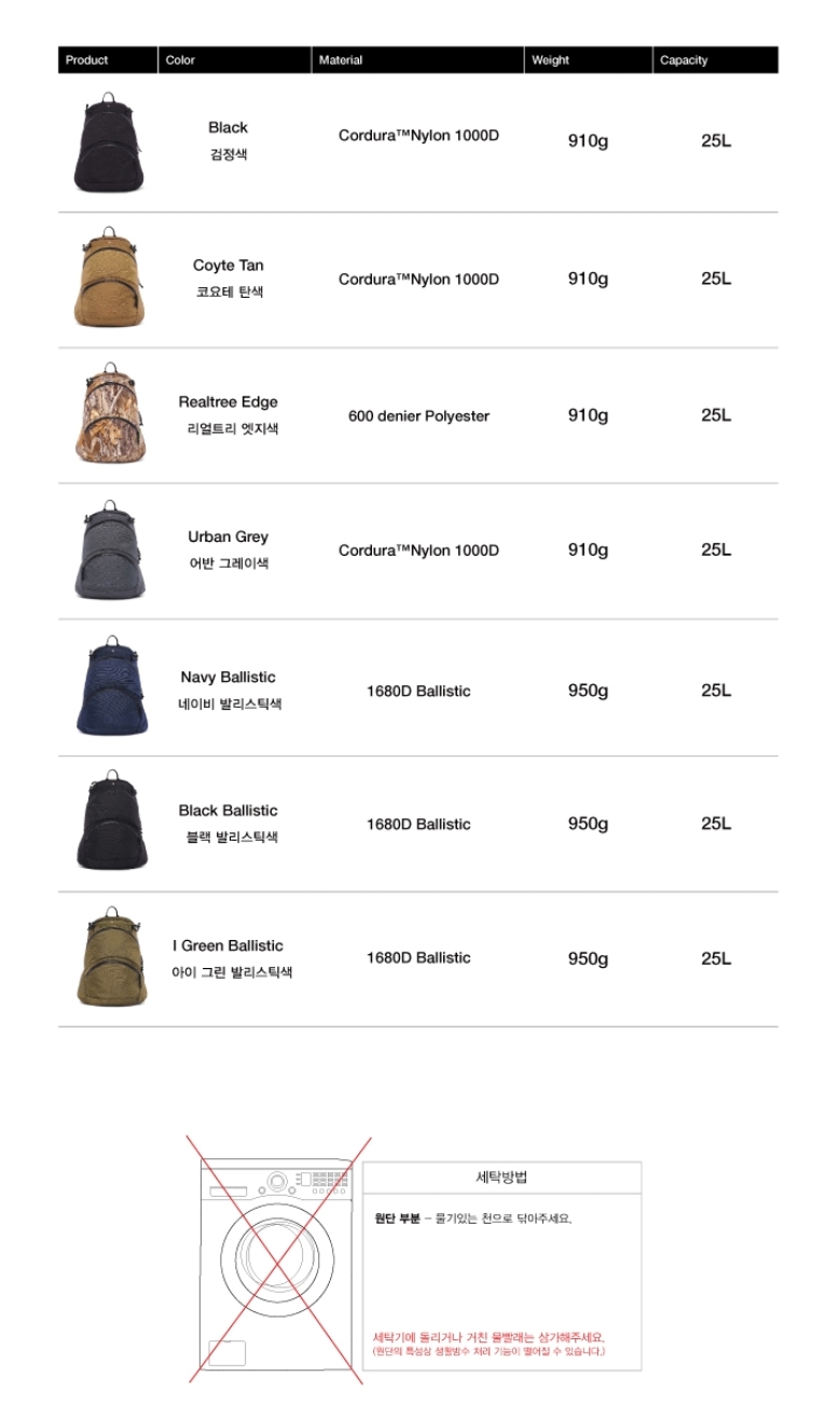 백팩에 대한 지식이 짧아 해당 제조사 홈페이지에 들어가서 좀 들여다 보았습니다