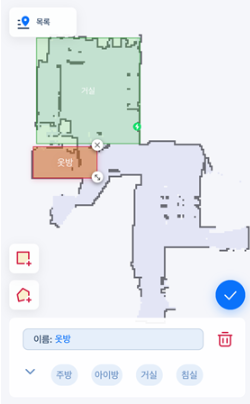 청소모드는 △파티션청소 △전체청소 △구역청소 △스팟청소 등 4가지 청소모드를 지원합니다