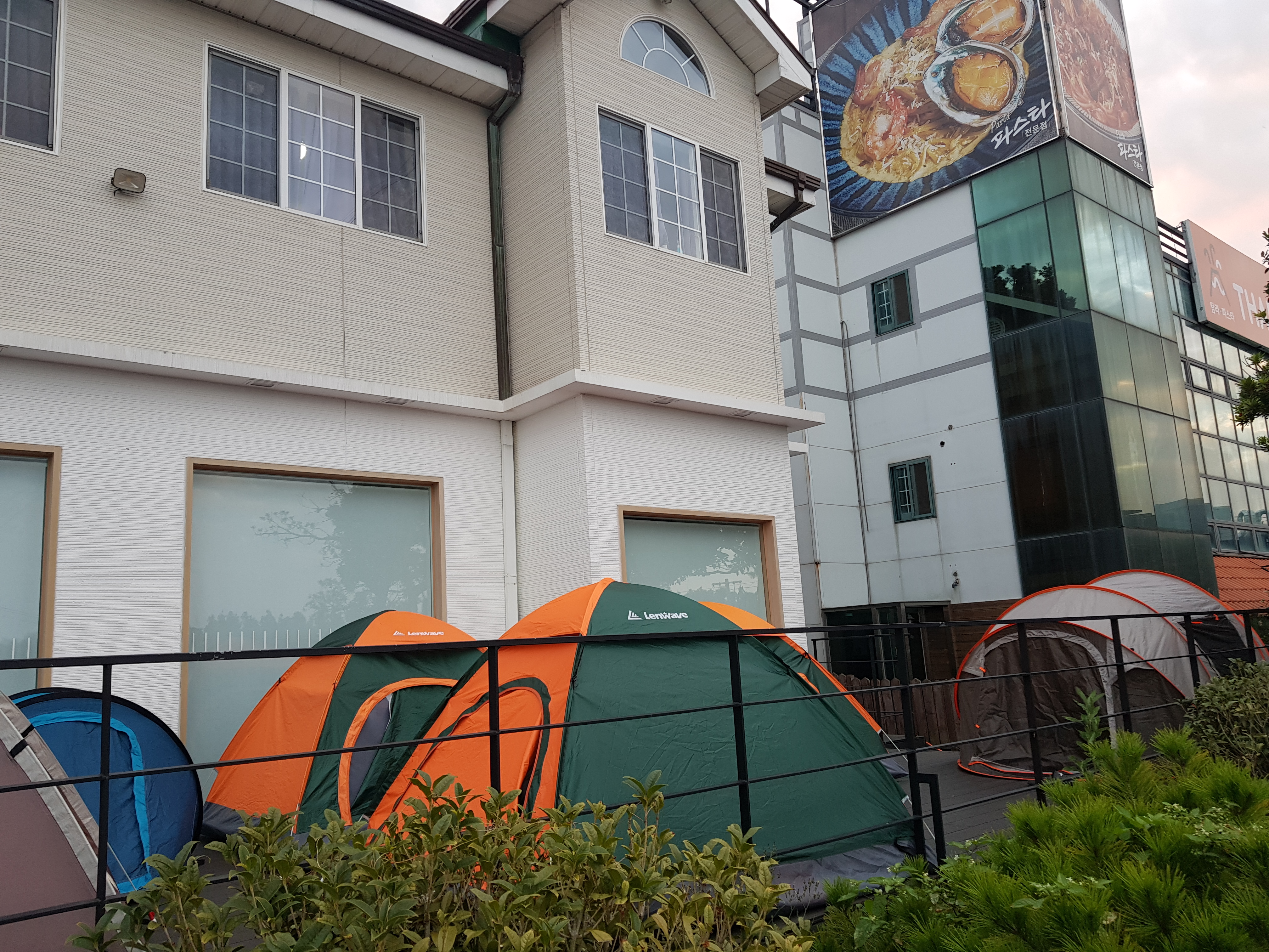 3.7mk 정도 되네요. 와보니 주차장에 차들은 거의 다 세워져 있고 연돈 돈까스 입구에는 텐트들이 쳐져 있습니다 텐트 임대해 주는 분도 있네요. 캠핑용 의자도 대여해주시네요. 저는 그냥 버틸(?) 수 있을거 같아 일단 대여 안하고 버텨 보고 있습니다.