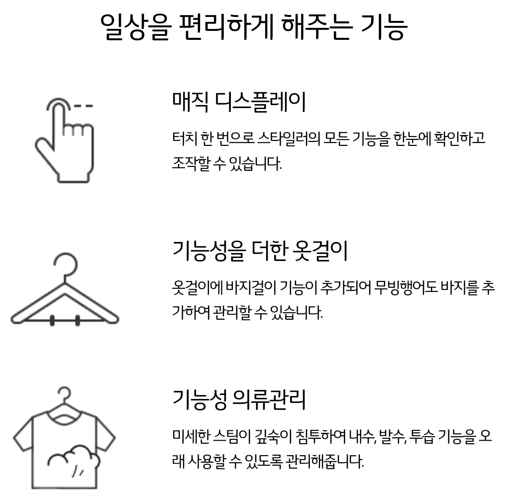 스타일러는 여러 기술이 복합적으로 사용된 제품이라고 할수 있겠네요..