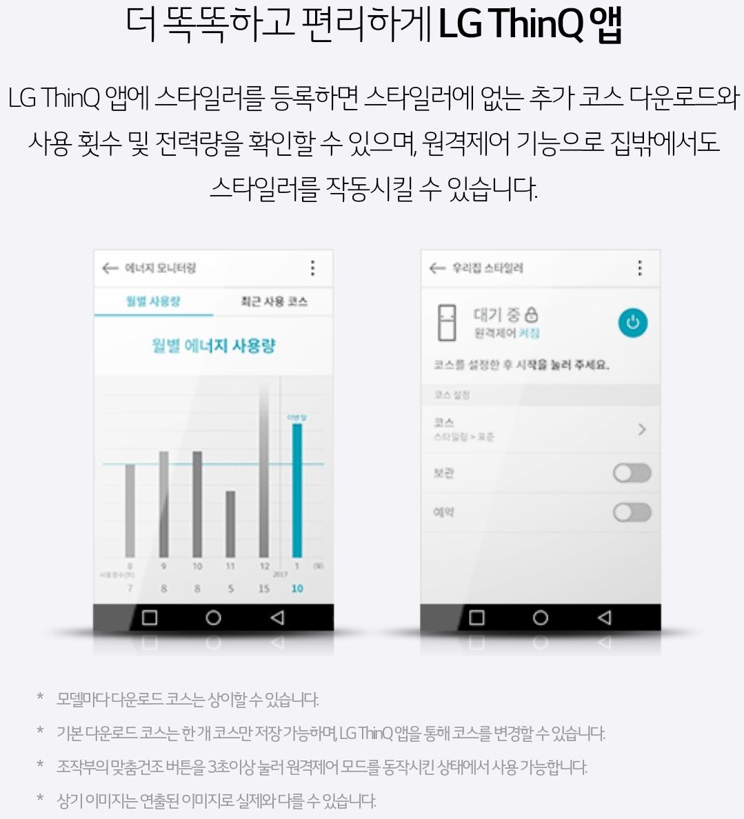 원격 제어 기능도 있어서 집밖에서 스타일러를 작동시킬수 있네요.