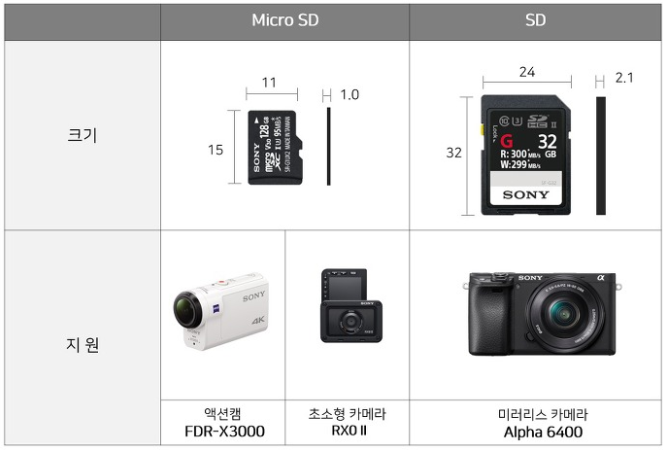 |크기에 따른 메모리 카드 분류