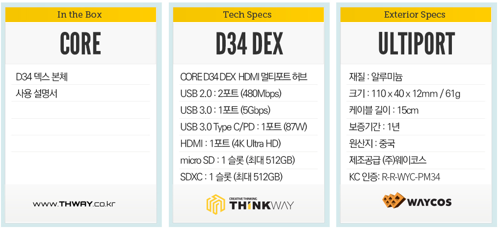 씽크웨이 CORE D34 DEX 멀티포트 제품을 구매 하였습니다.