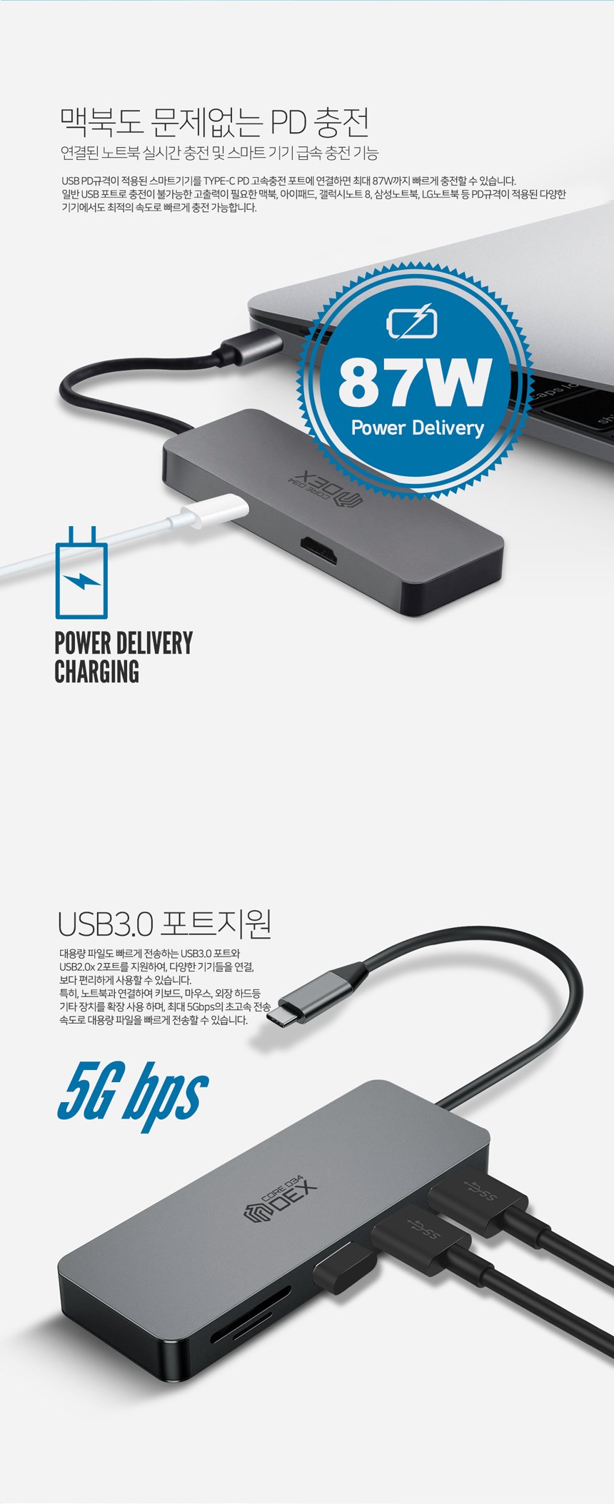 최대 87W 까지 빠르게 PD 충전 가능하다고 하네요
