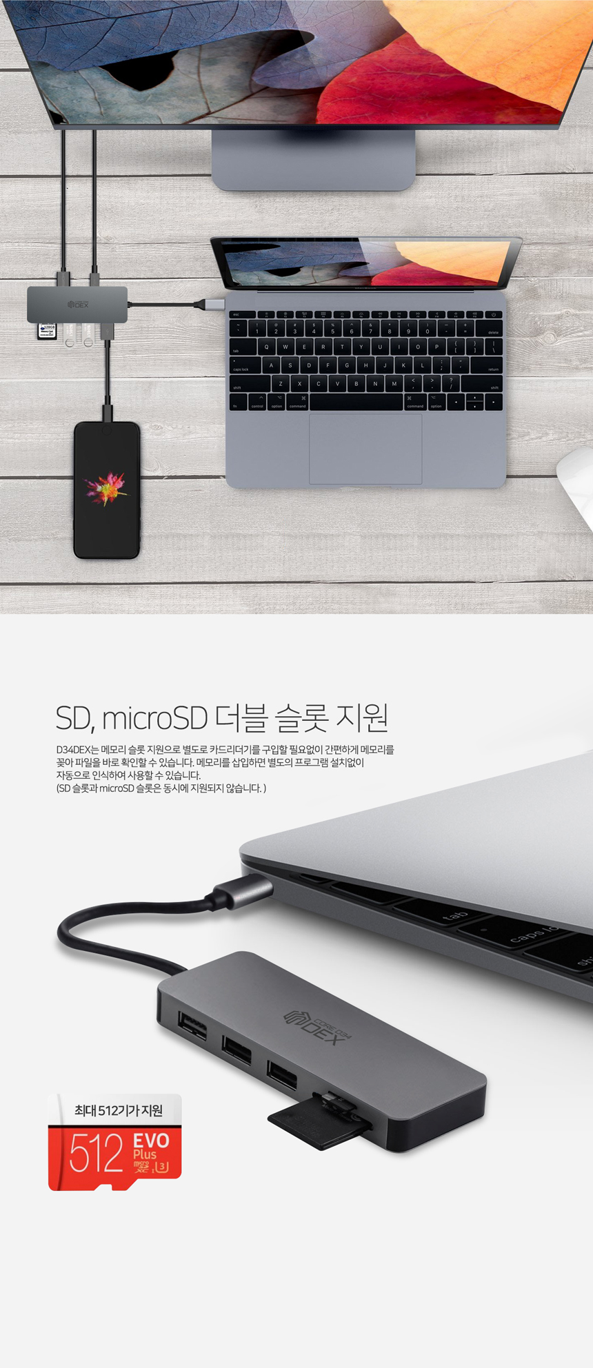 Micro SD, SD 카드 포트가 있습니다. 둘다 동시에 작업은 불가능하다고 합니다.