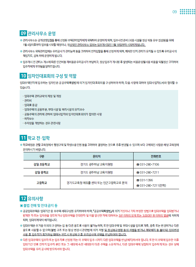 ※ 관리사무소 전화번호 개통은 단지 인근 통신선로공사 일정에 따라 지연될 수 있습니다.