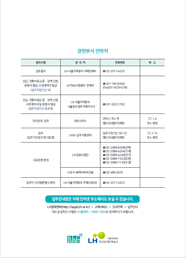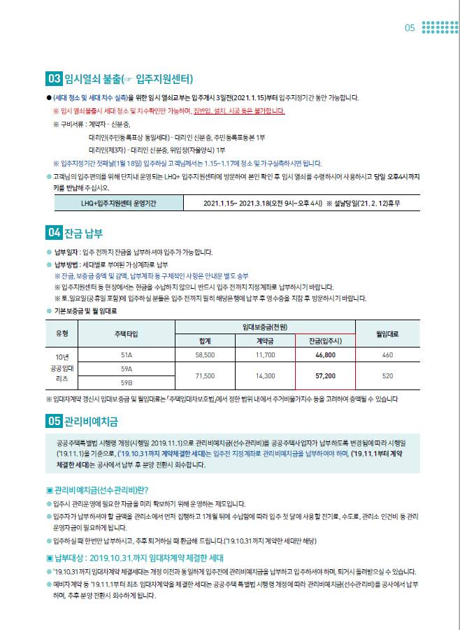 ※ 입주지원센터 등 현장에서는 현금을 수납하지 않으니 반드시 입주 전까지 지정계좌로 납부하시기 바랍니다.