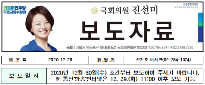 진선미 의원은 “새해를 앞두고 서울 강동 주민을 비롯하여 수도권의 많은 주민들에게 좋은 소식을 전하게 되어 매우 기쁘다”며, “서울을 포함한 수도권은 세계적인 메가시티로 발돋음 하고 있기에, 경제적·문화적 통합과 상생을 위해 교통에 대한 투자는 필수적”이라며, “광역교통개선대책이 조속히 추진될 수 있도록 최선을 다하겠다”고 말했다.