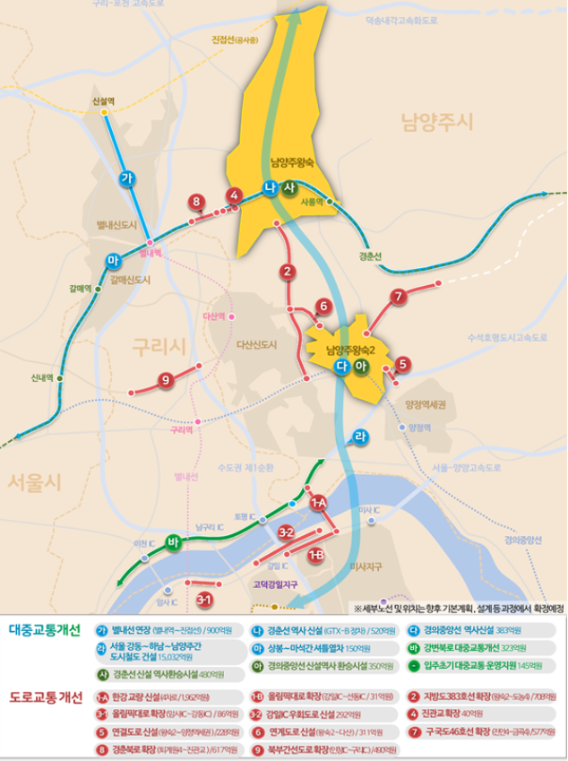 # 첨부 : 1. 남양주 왕숙신도시 광역교통개선대책(9호선 연장 포함)