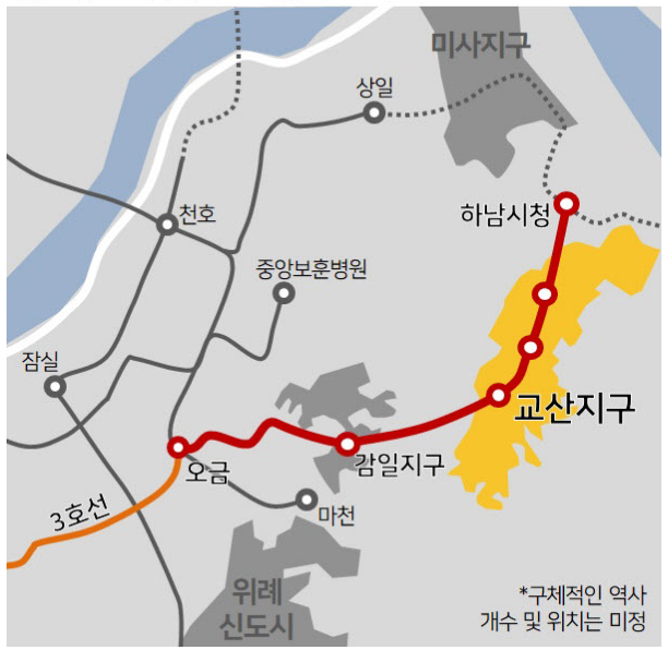 국토부는 2018년 하남 교산신도시 광역교통개선대책으로 기존 지하철 3호선 오금역에서 감일지구, 교산신도시를 거쳐 하남시청으로 연장하는 노선을 신설하기로 했다.