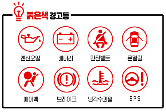 ■ 경고, 위험의 표시 붉은색 경고등 “즉시 운전을 멈추고 점검이 필요해요" !
