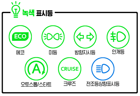 상향등을 작동하면 녹색 등이 아닌 파란색 등이 점등됩니다.