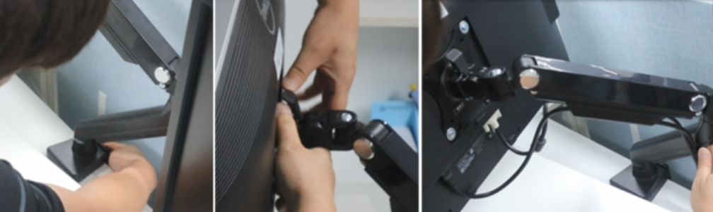 VESA 에 장착한 모니터를 모니터암에 장착해 줍니다.