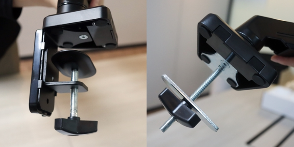 클랩프 타입은 데스크 두께를 집어서 고정시키는 방법이고