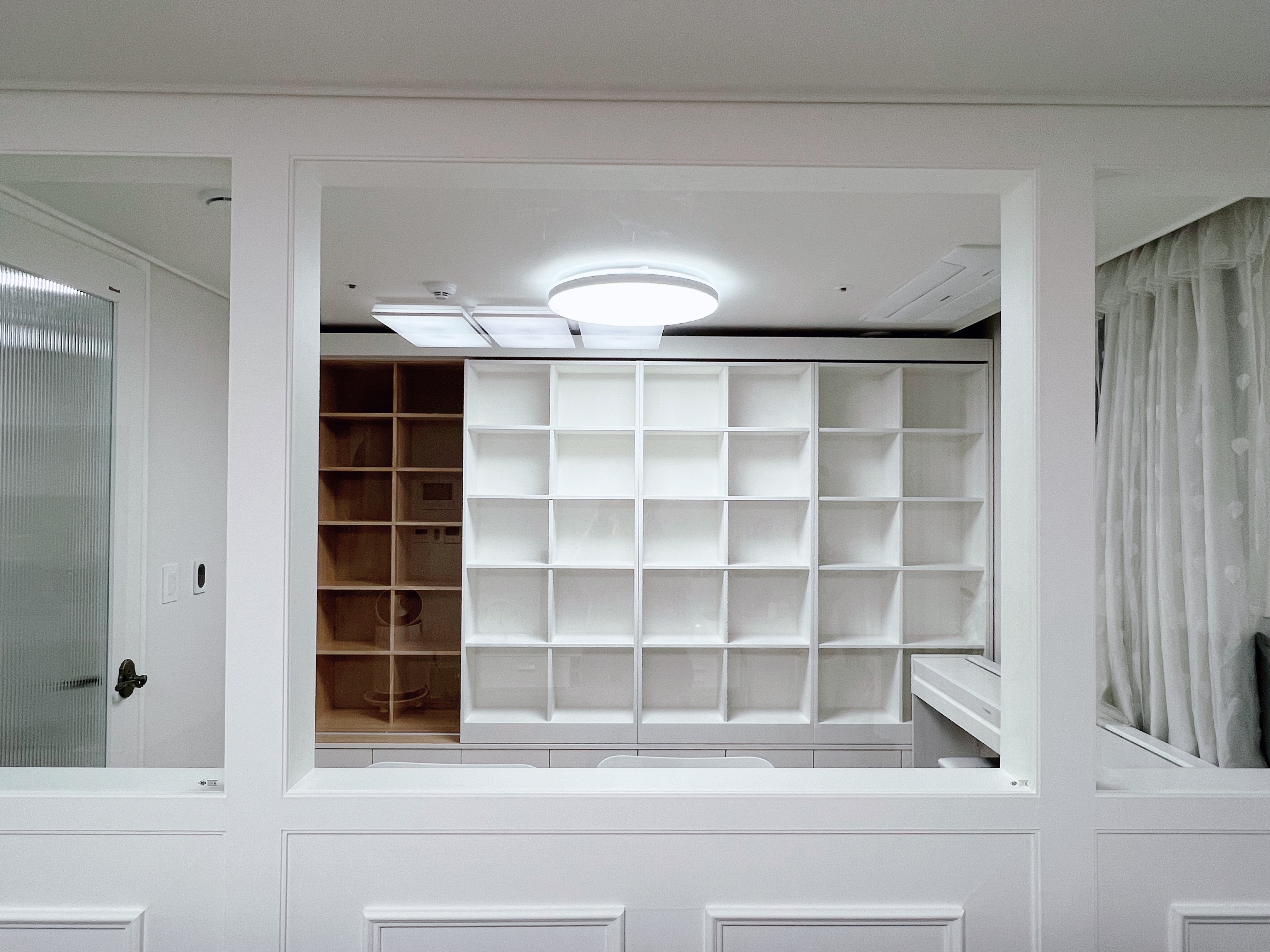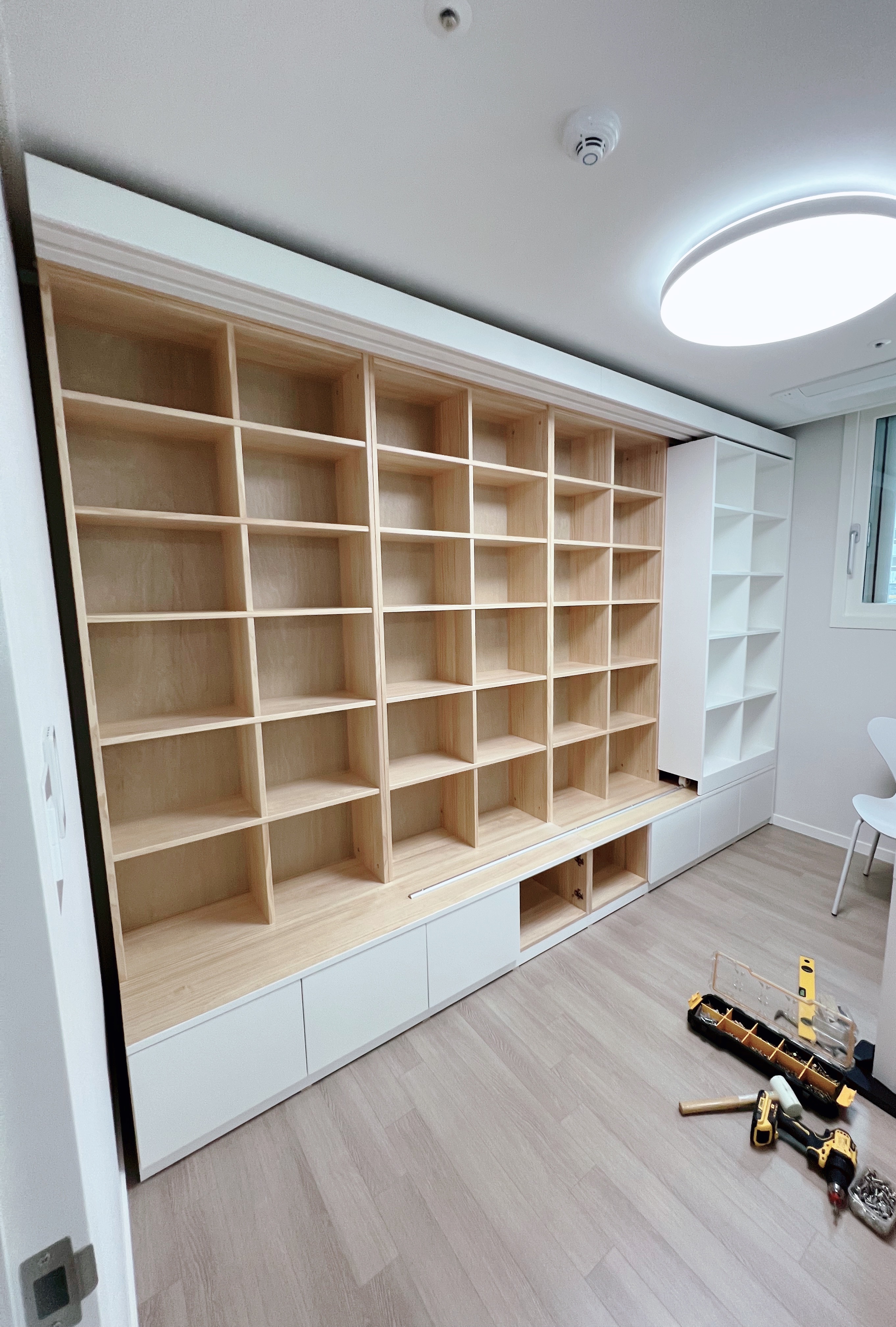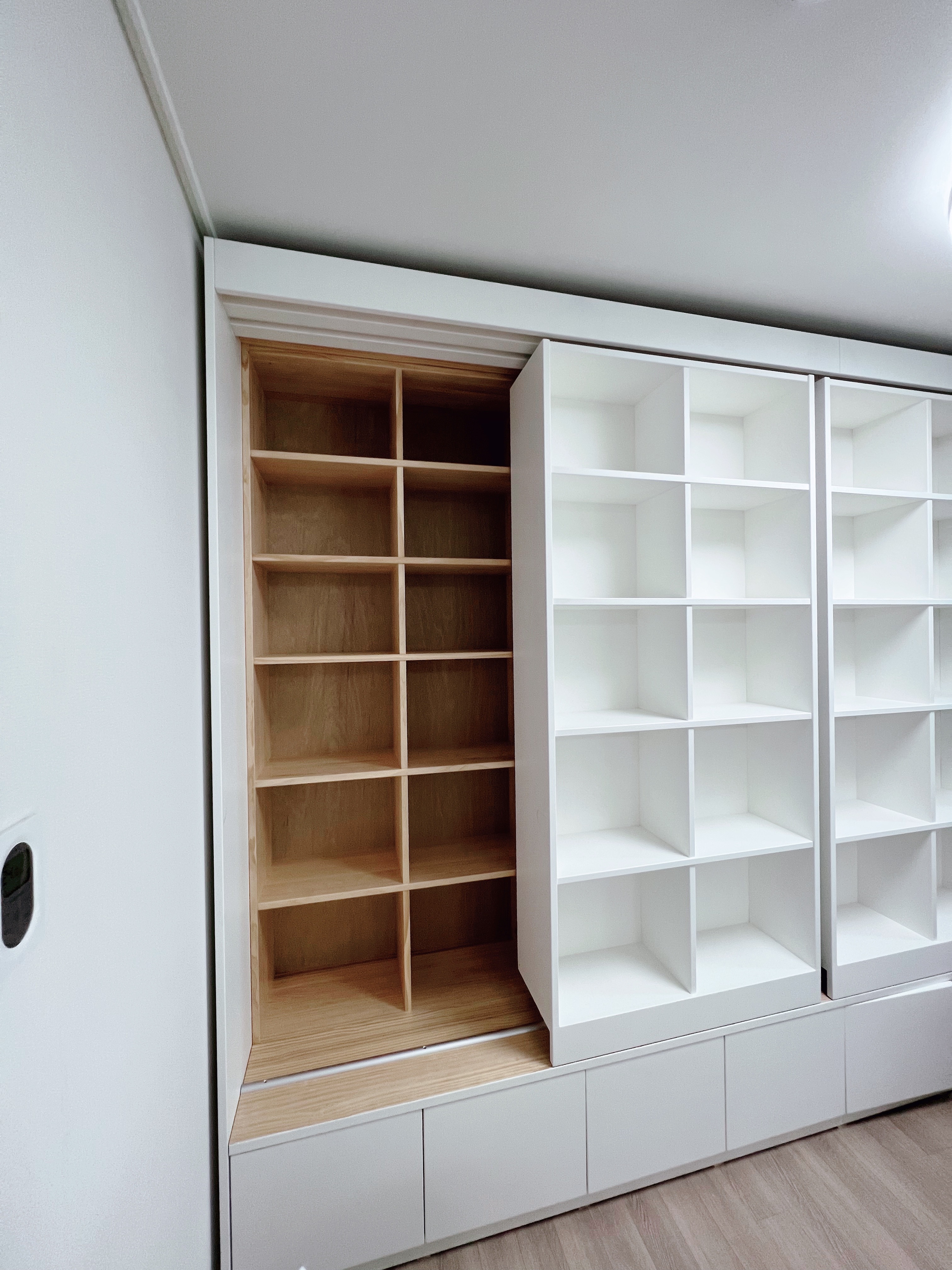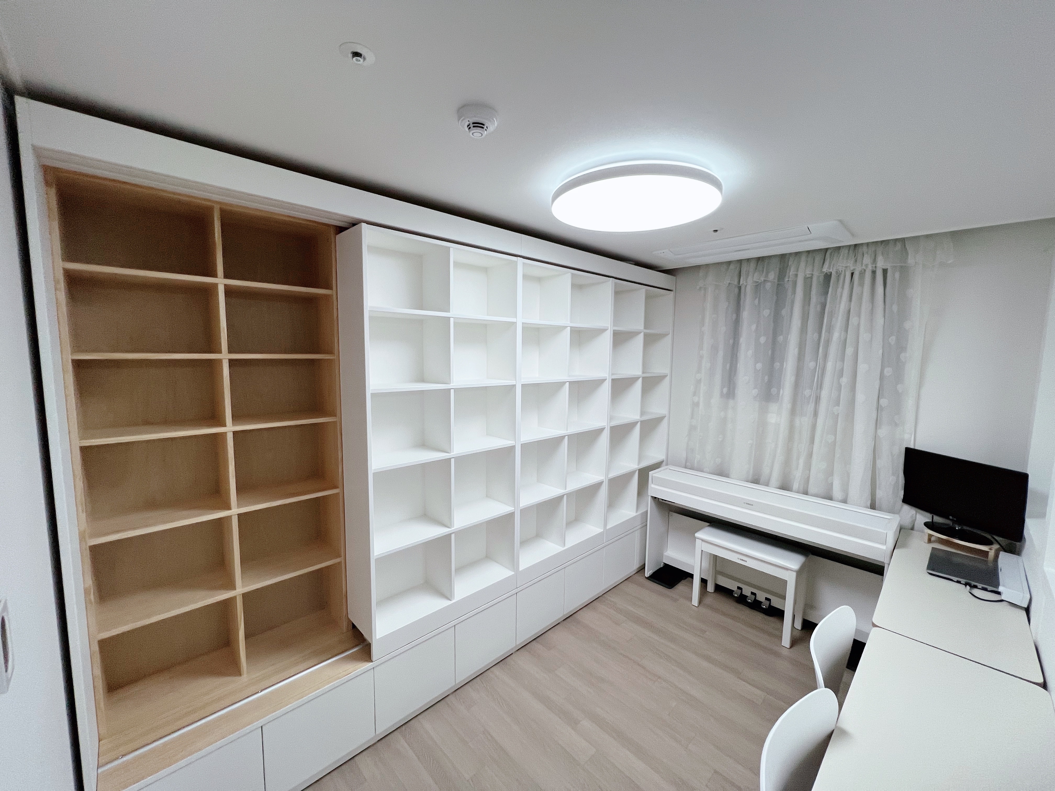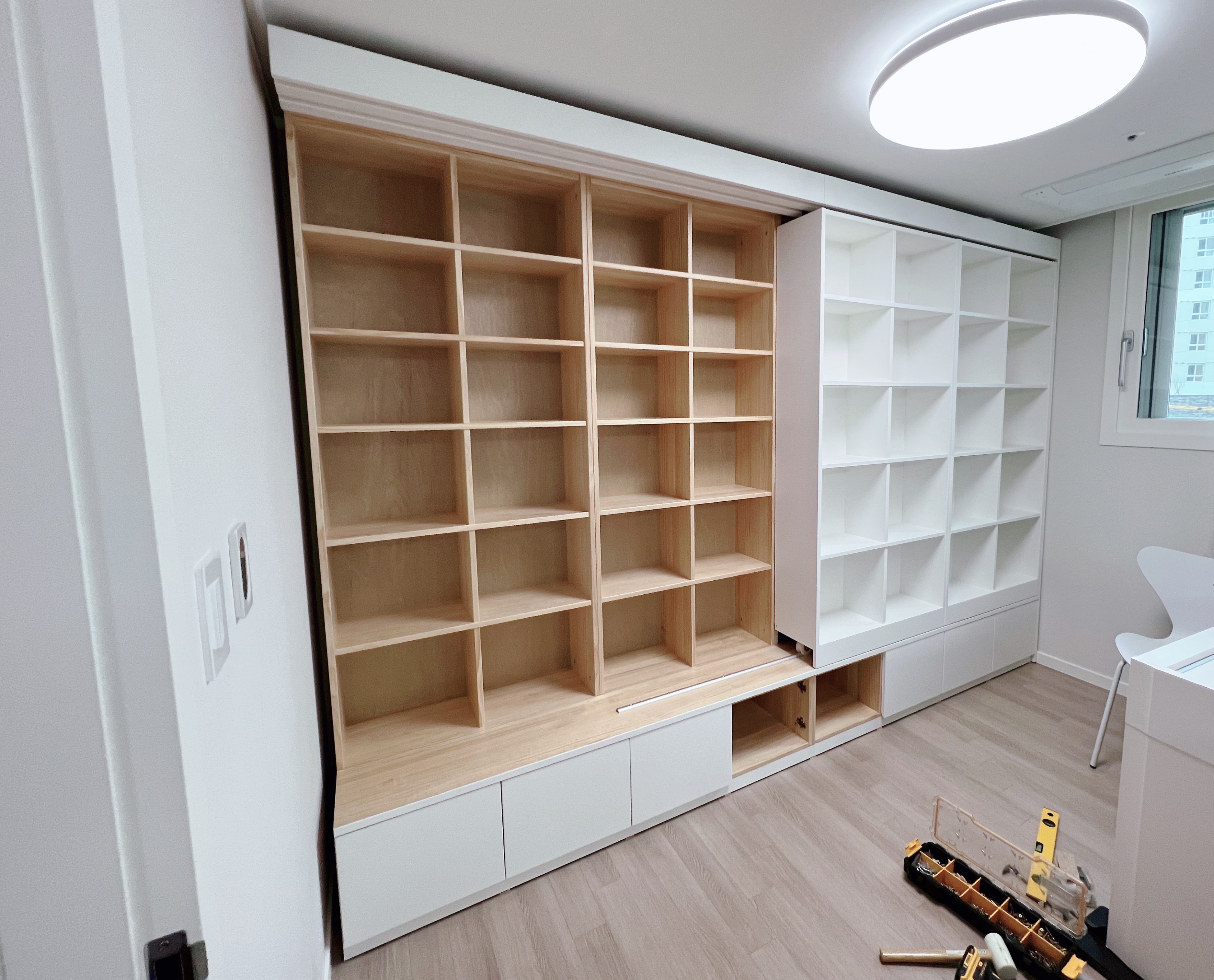 알파룸을 서재로 활용하고자 슬라이딩 원목책장을 알파룸에 설치하려고 합니다