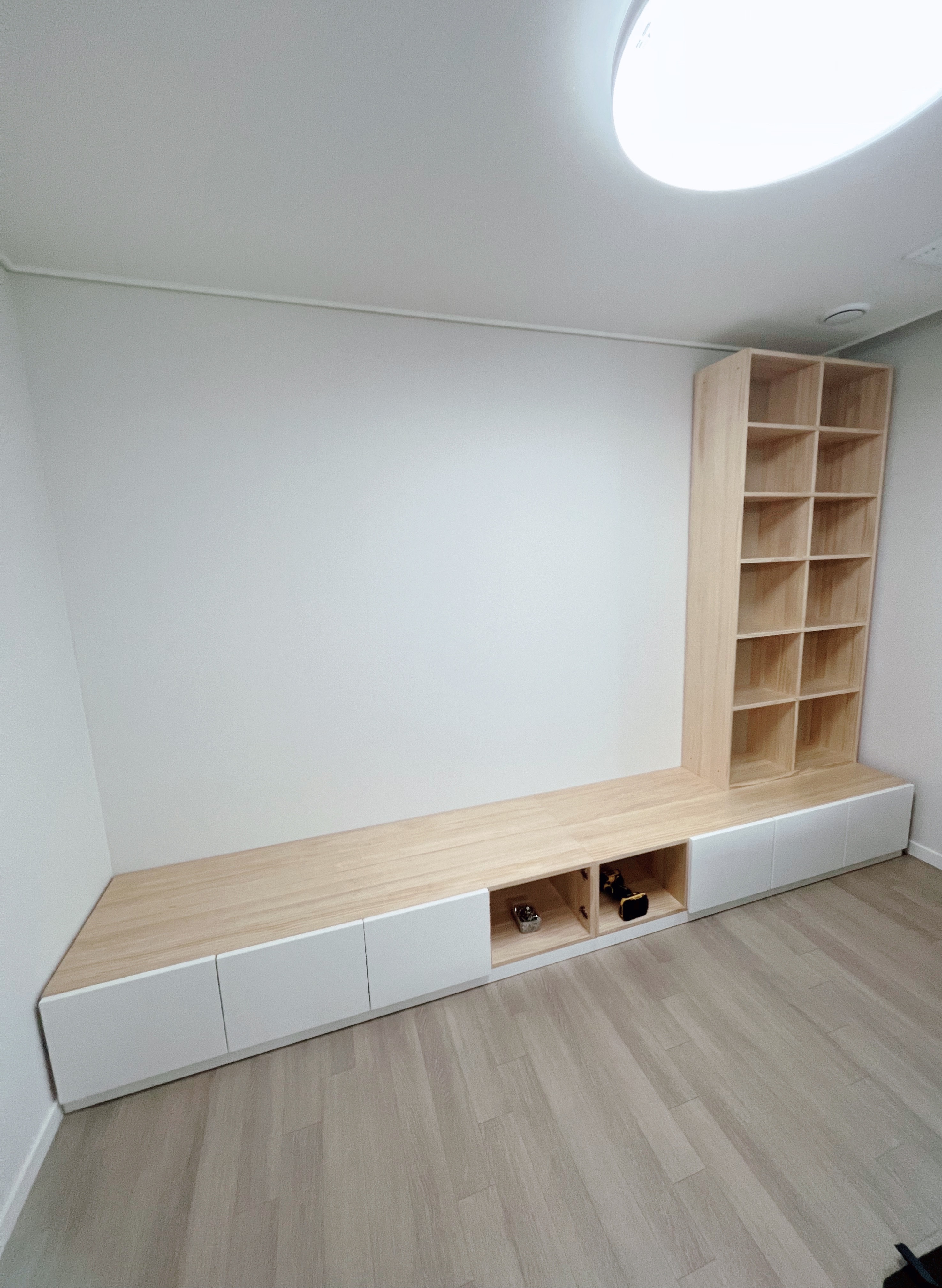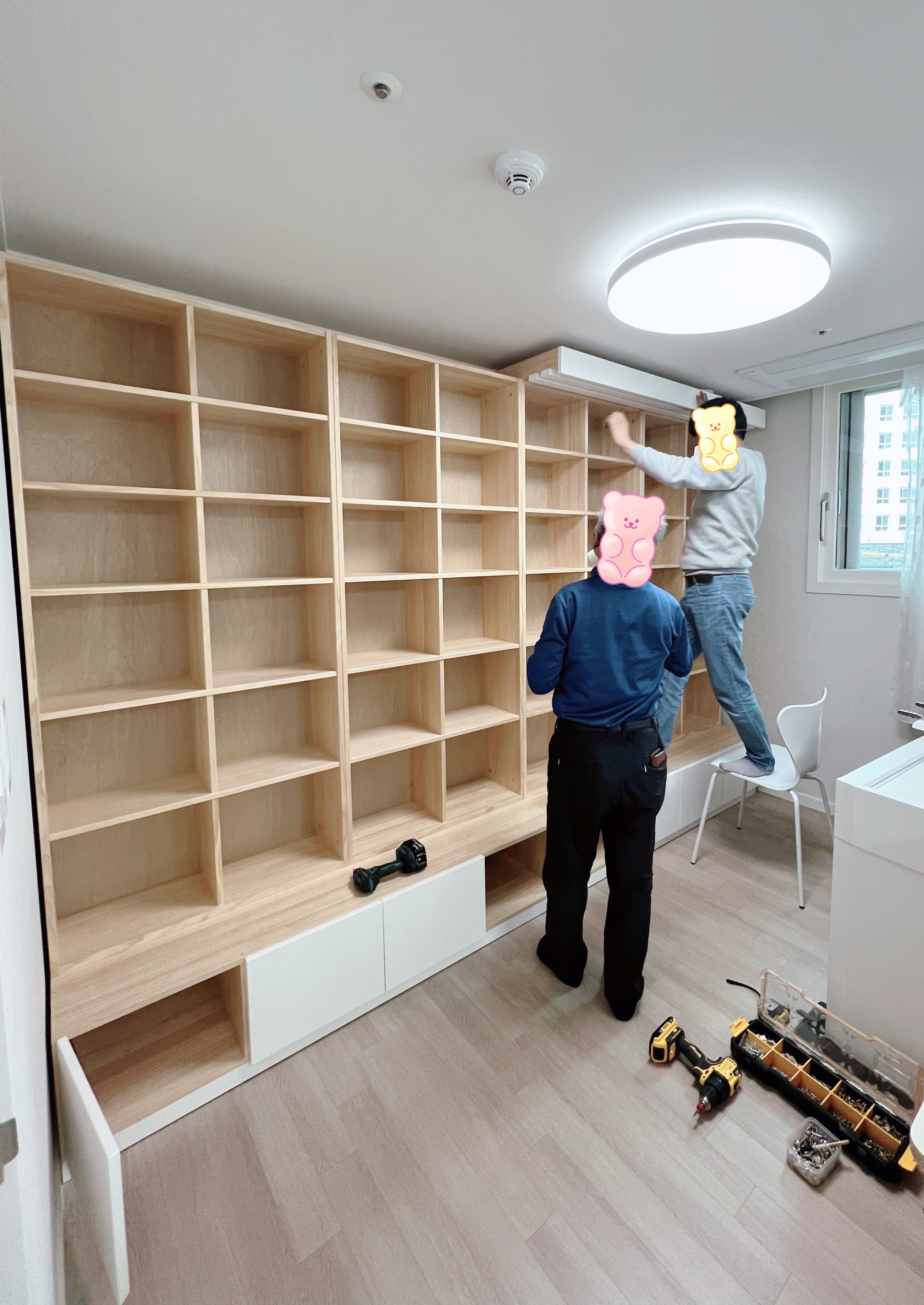 슬라이딩 원목 책장 설치한다고 전날부터 집을 싹 치워봤는데