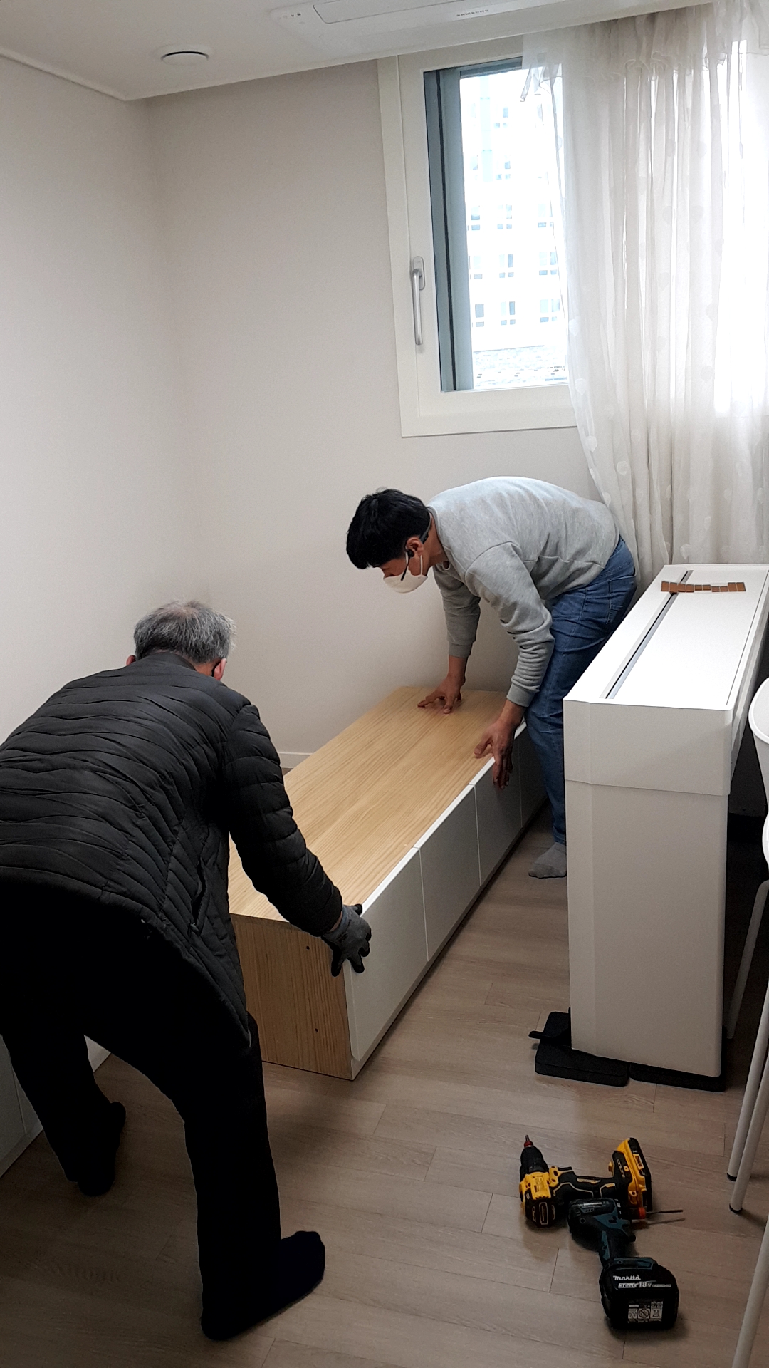 아내의 요청에 너무 꽉채워서 설계를 해오시는 바람에 하마터면 양옆 판이 안들어갈뻔 했었네요