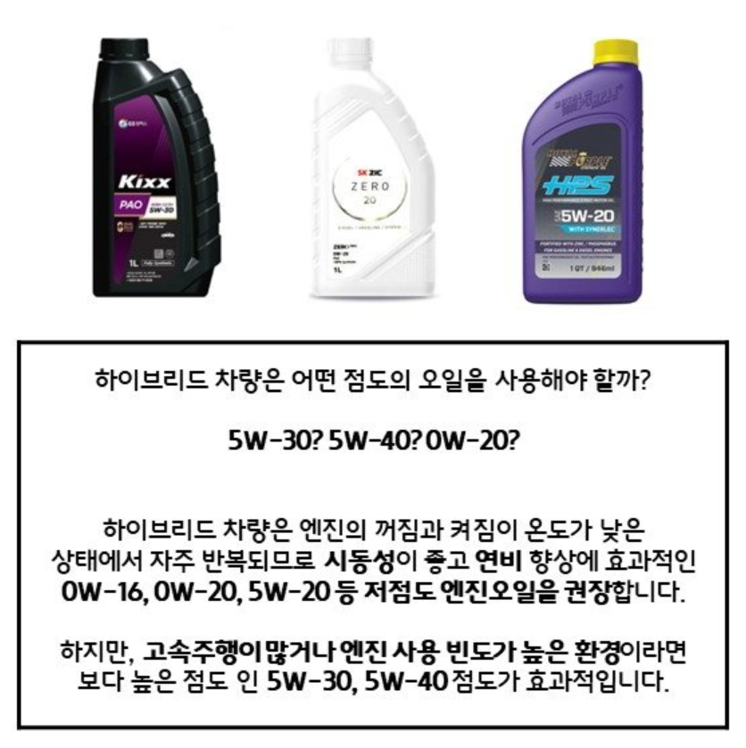 하이브리드 차량에는 하이브리드용 엔진오일이 있다고 합니다
