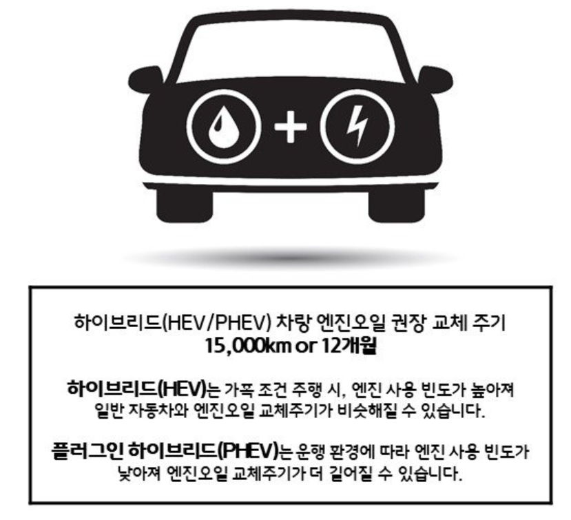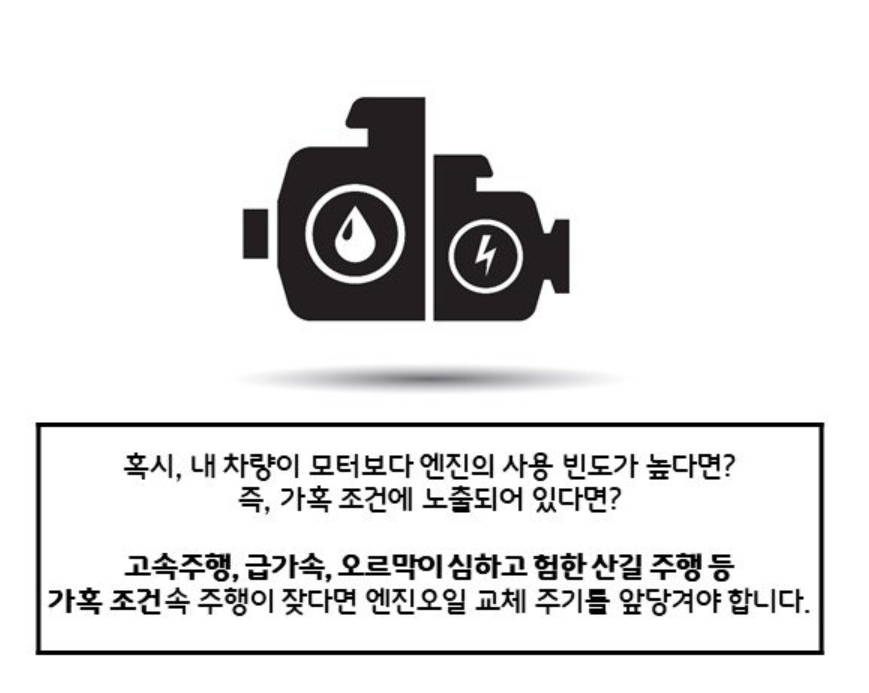 엔진 사용 빈도가 높은 경우는 일반 가솔린 차량하고 엔진오일 교체 주기가 비슷할수 있다고 하네요